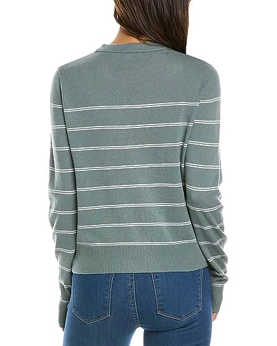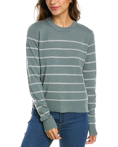 - Striped Wool & Cashmere-Blend Pullover in sea grass & off white with crewneck and ribbed trim