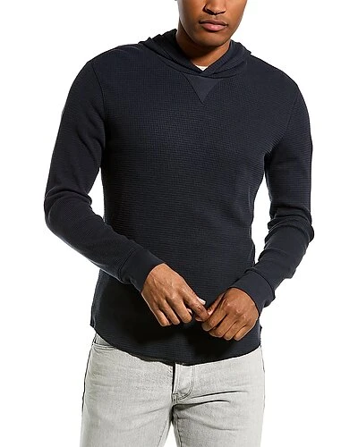 - Thermal Hoodie in coastal blue with waffle knit and raw edge hem