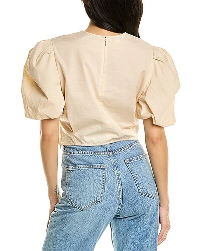 - Twisted Crop Top in pale fawn with pleated puff sleeves