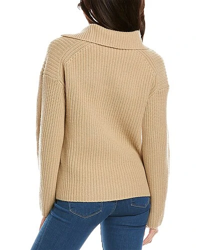 - V-Neck Collared Wool & Cashmere-Blend Pullover in fauna with shaker rib design and dropped-shoulder sleeves