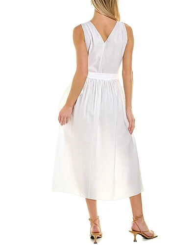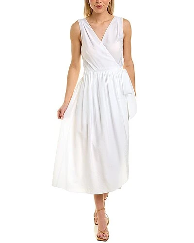 - V-Neck Wrap Dress in optic white with faux wrap look and waist sash
