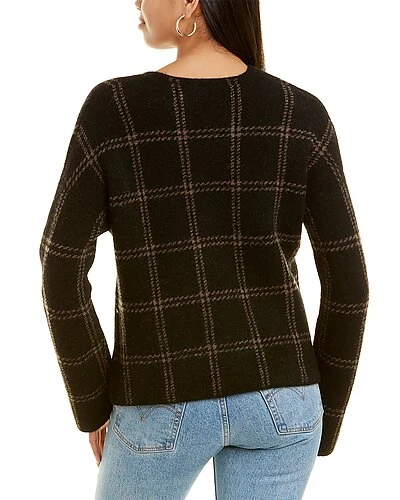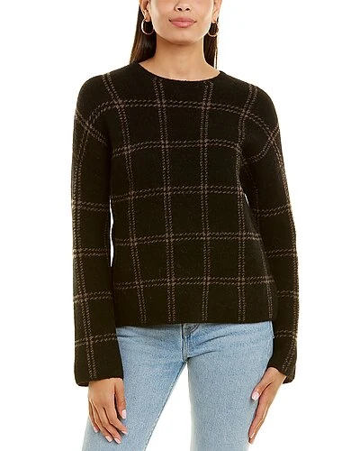 - Windowpane Plaid Wool & Alpaca-Blend Pullover in black/dark heather taupe with crewneck and dropped-shoulder sleeves