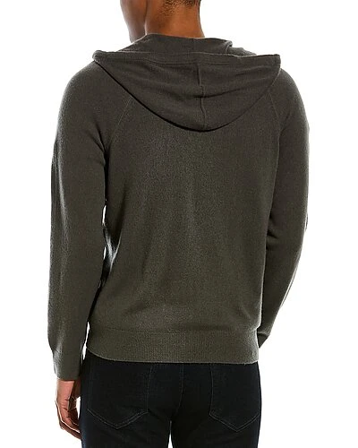 - Zip Wool & Cashmere-Blend Hoodie in forest green with divided kangaroo pocket and ribbed trim